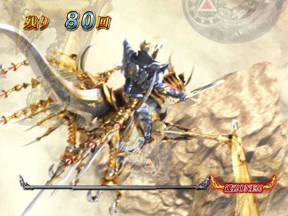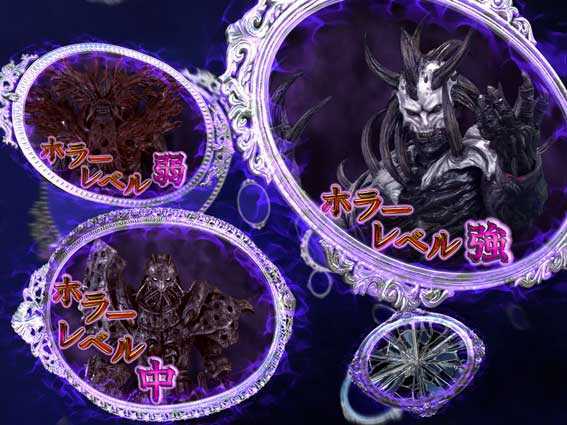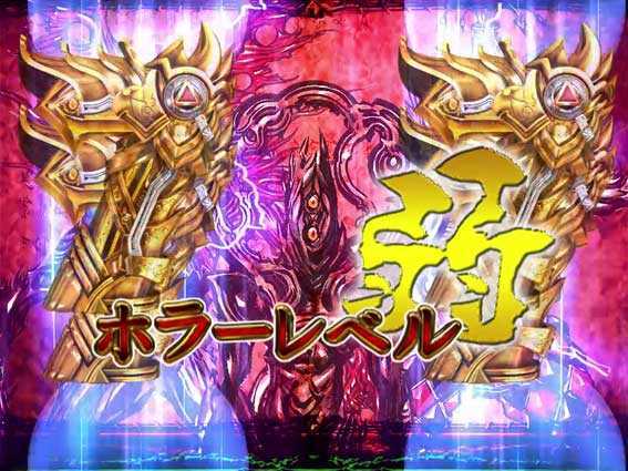 ホラー登場で発展するバトル演出。ホラーレベルは★の数が少ないほど、牙狼の攻撃は咆哮渦炎<光翼天招<英霊進軍の順にアツい。「CR牙狼魔戒閃騎鋼」同様に仲間登場や逆エンブレムなどの大当り濃厚パターンもある!?