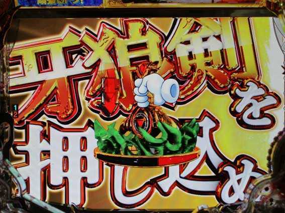 牙狼剣を押し込んでギミックが完成すれば大当り。牙狼斬馬剣出現なら期待大!
