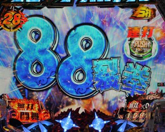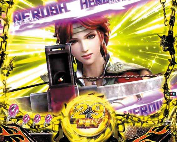 ループ率約90%の右打ち連チャンモード。前半9回転は爽快感溢れる多彩な演出で大当りを煽る「無双闘舞」が展開し、1回転+残保留3個の演出は「幻闘決戦」(初当り後の幻闘決戦と同様)となる。