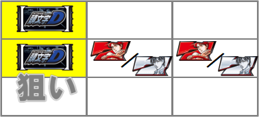 ドリフト目成立後は1回目のハズレで必ず「Dを狙え」が発生するため、目押しミスさえなければ必ず揃えられる。ボーナスは成立フラグを特定する必要があるため、すべてを1回目のハズレ時に揃えるのは不可能だ。