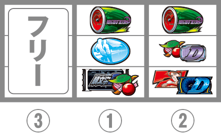 | 備考 | ★消化中の成立役に応じAT抽選 ★消化中のD揃いはAT当選濃厚 ★BIG成立時の状態でAT当選期待度変化 |