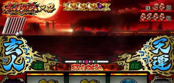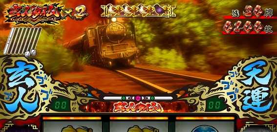 本機はATの種類により純増枚数が変動するタイプで、純増は約2.5枚⇒約5.0枚/Gとなっている。AT中に発生する雀聖ボーナスのミッションでAT純増枚数の昇格を目指す。ATは30G1セットで残りゲーム数が0になると5Gの天運チャンス(継続判定ゾーン)に移行。ATが8回続けば必ず上位AT「絶景(純増約5.0枚/G)」に突入する。いかにAT継続させるかが出玉のカギとなりそうだ。