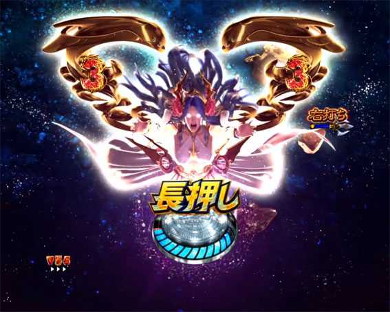 時短中に7が揃って巨大GOD図柄が降臨すると発生。保留内に10R大当りが3個あることが濃厚になる!