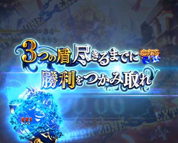 GOD GAMEは時短19回転+残保留4個の連チャンモードで、約83%という高い継続率を持つ(期待獲得出玉は約8000個)。前後半で演出が変化し、前半は高速消化のEXTRA ZONE、後半は高信頼度のリーチが3回発生するAEGIS CHARGE(イージスチャージ)が展開する。