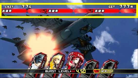 AT中はゲーム数上乗せやボーナスで延命しながら、バーストレベル最上位の<バーストLV8.0>を目指そう。いかに高レベルで長いゲーム数を消化できるかがカギとなりそうだ。なお、一度上がったレベルはAT終了まで下がらないのは嬉しいところ。
