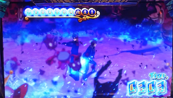 継続ジャッジ演出は自力ゾーン中に発生。発生時はリールロックが発生し、1段階▶︎12択、2段階▶︎2択の押し順当てが発生する。押し順当てに成功すれば無敵ゾーンへ復帰だ。