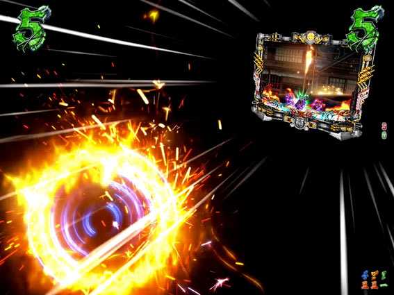 リーチ中にボタン連打でランプの色が 白⇒青⇒緑⇒赤と変化していく。 赤になれば発展図柄停止濃厚。 連打しても白のままなら超激アツ。 |