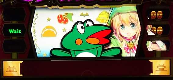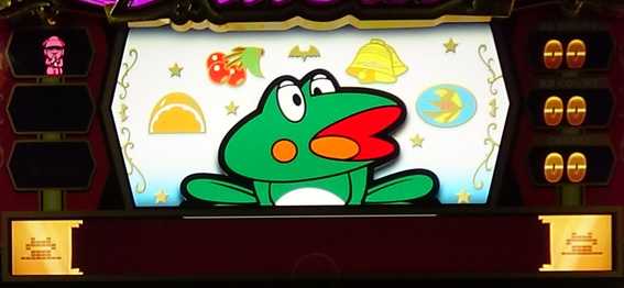 | 次ゲームで確定画面へ移行する演出は すべてBIG濃厚 (背景にぶち抜きキャラ登場、SE付きカエル変化など) |