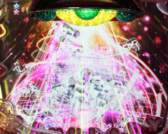 基本的には10Rの通常大当りでチャンスタイムに突入するが、ラウンド中のUFOパトタッチ演出に成功すれば10R確変へ昇格する。