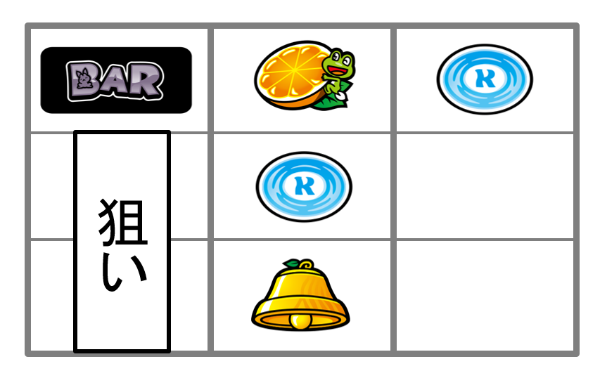 中リールはBARが2個あって見づらいですが、7の上にあるBARなので、それを目安に狙ってみましょう。