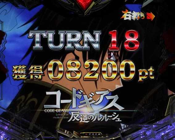 右打ち中限定の特殊演出。ギアスRUSH発動中は出玉獲得パート(いわゆる大当り中)と準備状態パート(次回大当りまでの時短状態。液晶表示は「NEXT TURN待機中」)が繰り返され、1度の大当りが超ロング継続しているような感覚でプレイできる。
