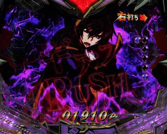 | 右打ち指示画面で皇帝ルルーシュ出現 | 10R大当り濃厚!? |