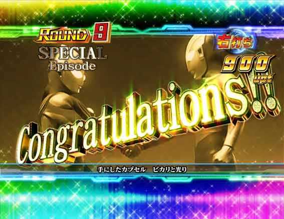 初回赤図柄揃いで発生する4R大当り。終了後はウルトラ超光RUSHに突入。