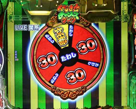 ゲームの流れは前スペックとほぼ同じで、通常時はやじきたチャンス突入を目指す。突入確率は1/89(特図1当りとC時短の合算値)で、突破成功でRUSHに突入する。なお、本スペックのやじきたチャンスは20回転の選択率が大幅アップしているのが特徴だ。