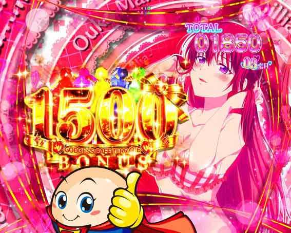 週刊少年マガジンで連載中の人気コンテンツ「女神のカフェテラス」がパチンコ化。スタートに玉が入りやすい「BIGスタート」を搭載したLT3.0プラス対応機種で、初回図柄揃いの約40%LTがLT直行となるわかりやすいゲーム性を持つ。LT「女神の交響曲TIME」は100回転のST型RUSH。継続率は約75%で、大当り当選時の約75%が出玉約3000個(※)以上となる。