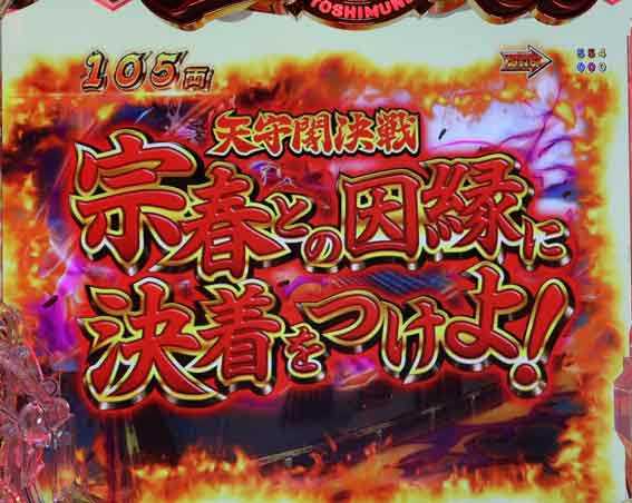 宗春とのバトルで勝てばRUSH突入。タイトル文字の色が赤だとチャンスアップ。