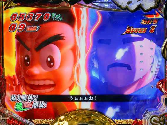 RUSH終了のピンチとなる右打ち中専用の大当りだが、1050個の出玉を獲得できる。ラウンド中は猿丸と刺客によるバトル演出が展開し、猿丸が勝てば猿USH突入、失敗で通常時に戻る。なお、下記のように突入契機によってバトルの相手が変化するぞ。
