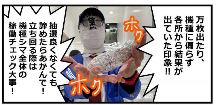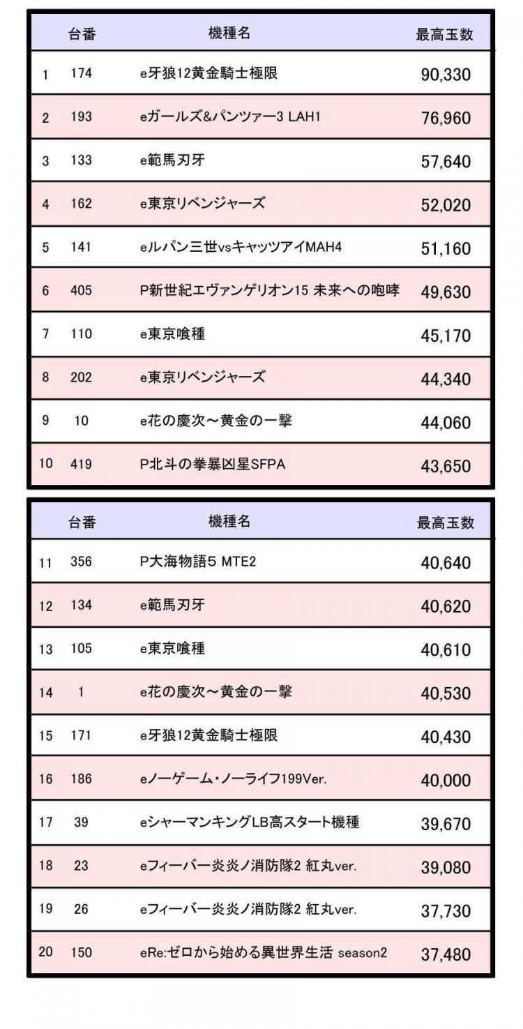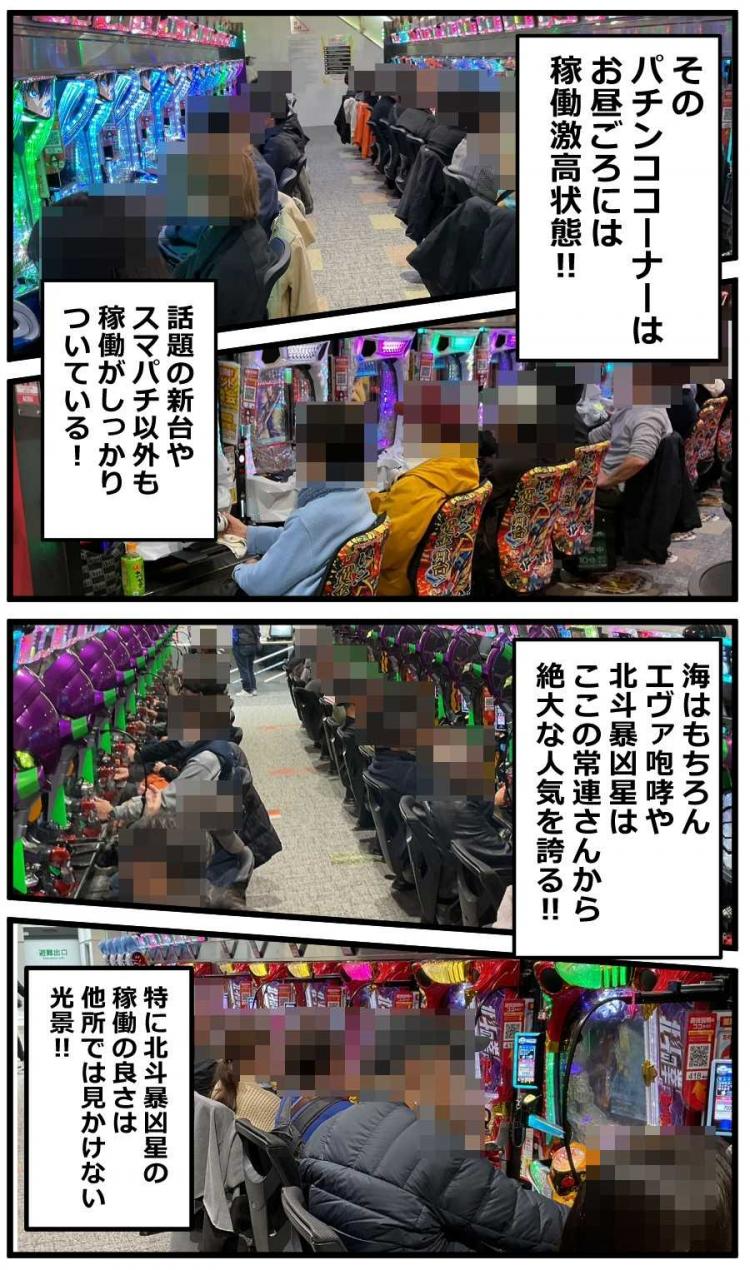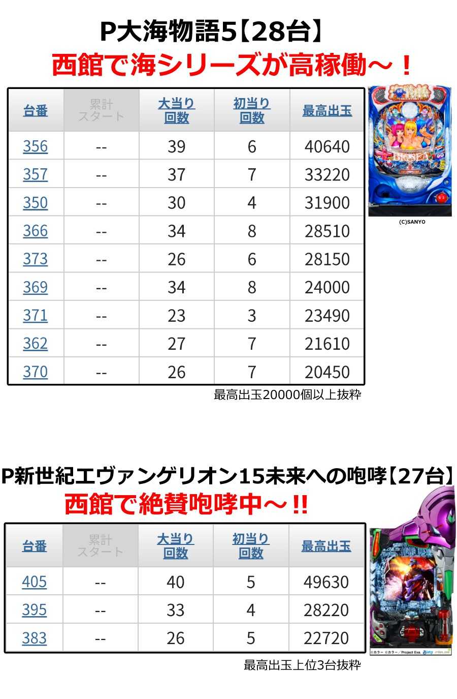 | 稼働 | パチスロピーク稼働約90%オーバー! パチンコピーク稼働約85%オーバー! 平日でこの稼働はええなあ♪ |