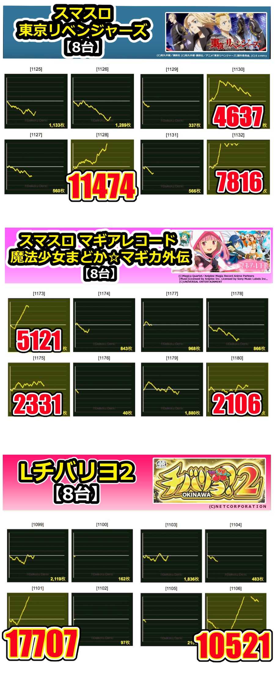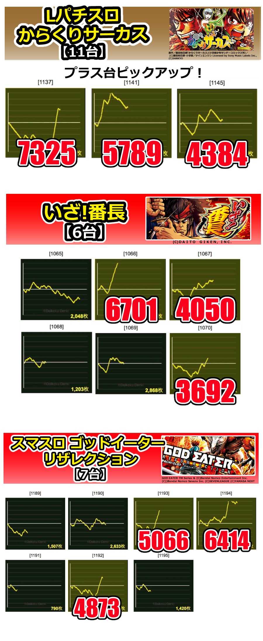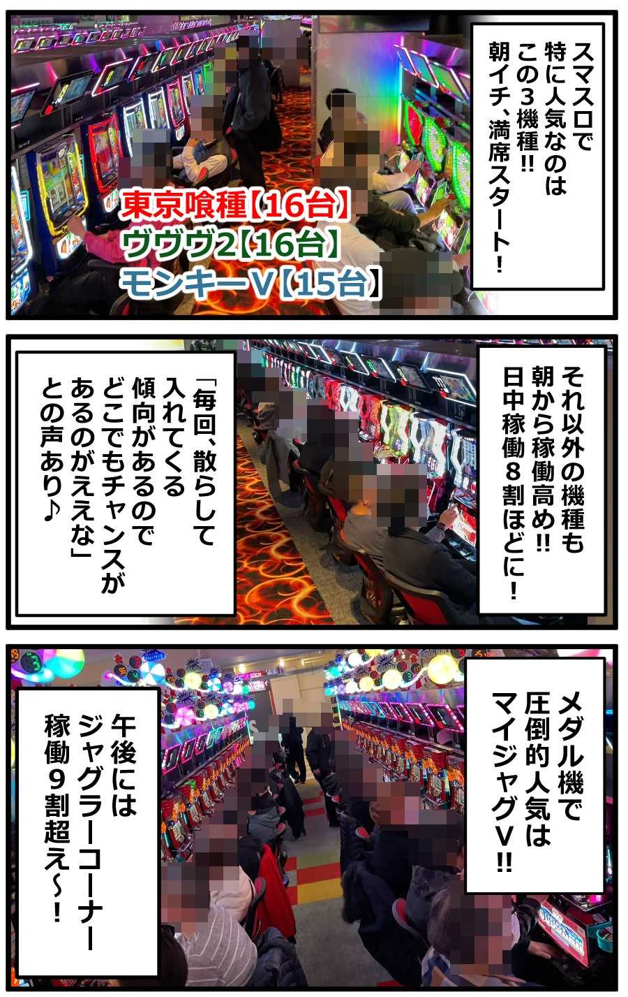 | 稼働 | パチスロピーク稼働約90%オーバー! パチンコピーク稼働約85%オーバー! 平日でこの稼働はええなあ♪ |