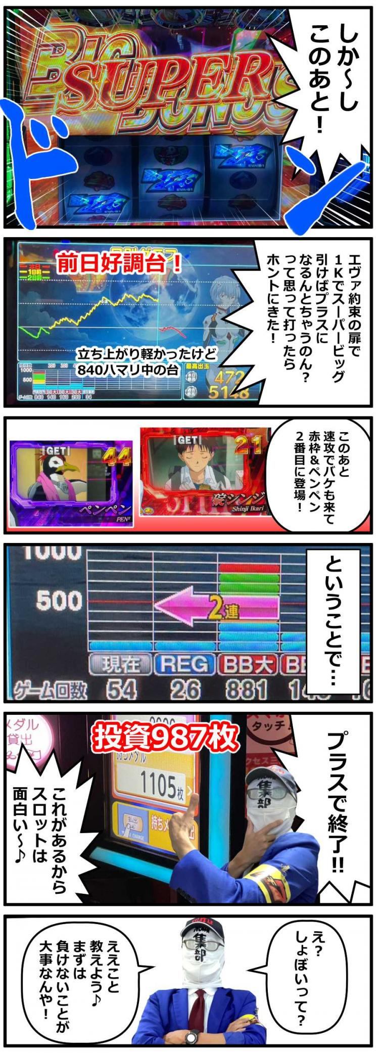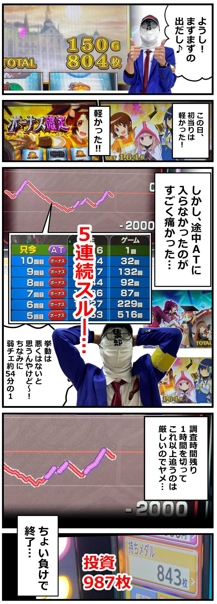 スロ、パチの勝率は…まあ、そこはええやん。目押しレベルは3(10段階)。